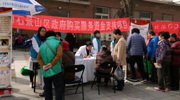 3月17日,在石景山区民政局的组织下,长庚社会工作事务所参加2016年国际社工日-北京社工宣传周“发展社会工作 助力扶贫济困”活动。内容有:事务所介绍,展台展出、事务所带来医务志愿者为现场居民带来义务义诊活动,现场内科、骨科、中医科咨询、测量血压等。同时带来相关健康宣传材料及小礼品,进入社区活动2.5小时。期间居民踊跃参与,积极询问相关内容,现场效果较好。现场发放健康资料1000余份。