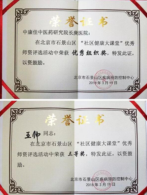 此次健康大课堂优秀师资评选活动,共有18家医疗单位参加比赛,上报了31个“健康课堂”讲课视频作品。经过初选、区级评选后,2222.net与石景山医院、玉泉医院、中国中医科学院眼科医院、石景山区妇幼保健院等12家医疗单位进入决赛,并最终取得了石景山区社区健康大讲堂优秀师资评选活动“优秀组织奖”、石景山区社区健康大讲堂优秀师资评选活动个人“三等奖”的优异成绩。
